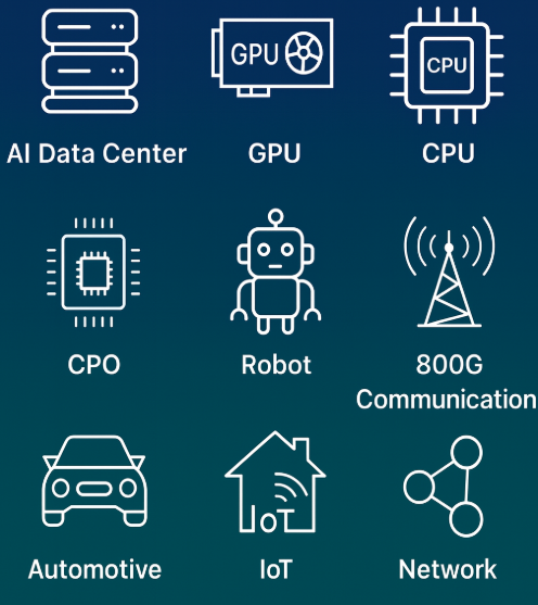 I-Chiun’s products have been successfully applied in various fields such as AI Data Center, GPU, CPU, CPO, robotics, 800G communication, automotive, IoT, and Network.